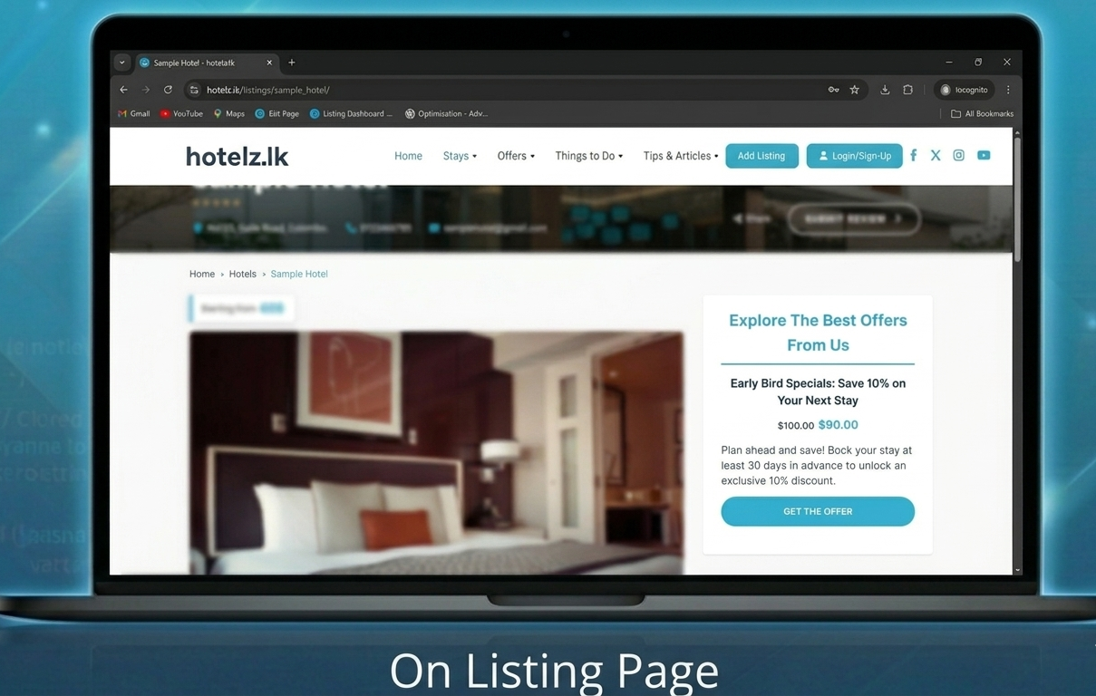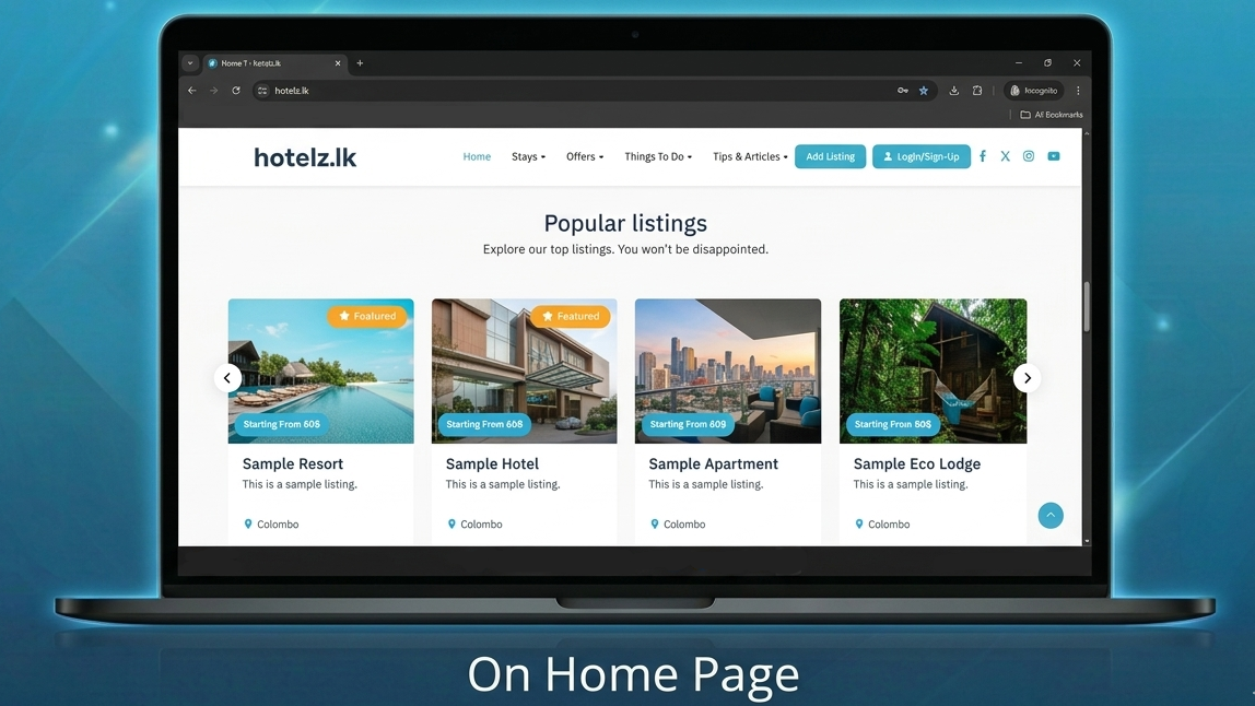 Get discovered by international tourists specifically looking for Sri Lankan stays.
